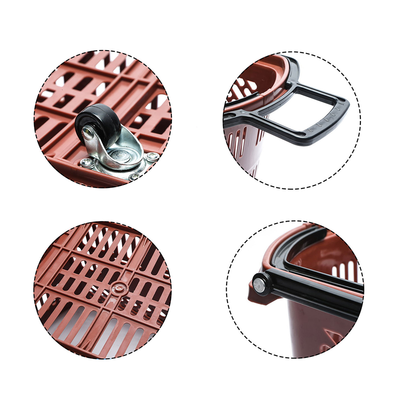 This Trolley or shpping basket is made of PP, and its volume is 35L. There are four wheels at the bottom, so you can easy to carry it when shopping or go for a picnic.