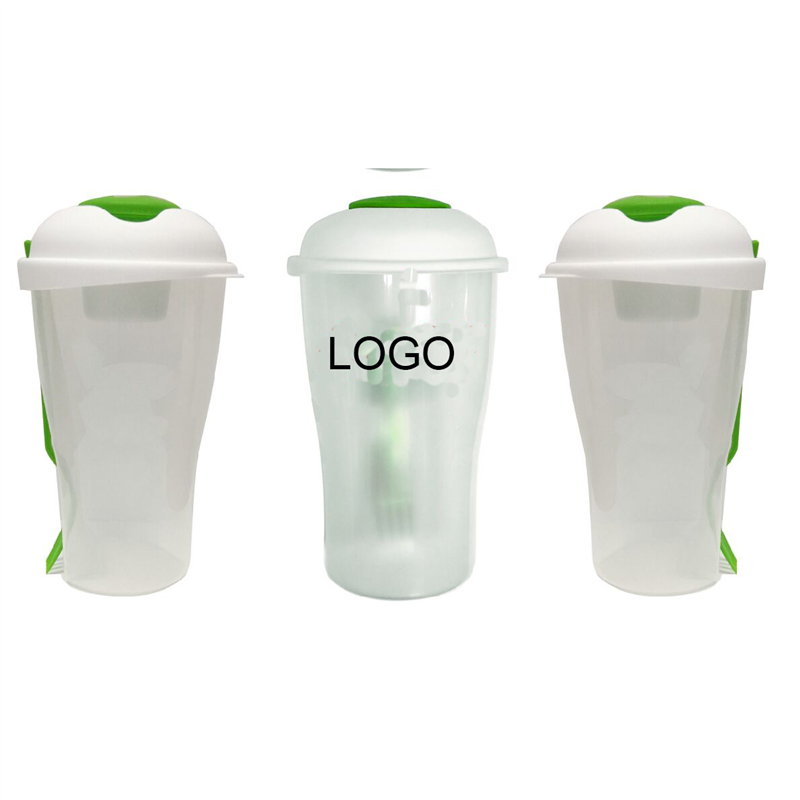 The salad container is made of PP. This salad container helps keep salad or fruits fresh, cool and crisp. It has an easy grab and ergonomic design. Company logo and name can be imprinted.