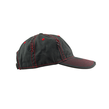 It is six panel baseball cap with distressed washed, white fabric with colored stitching, velcro fastener tape. Your logo can be customized.