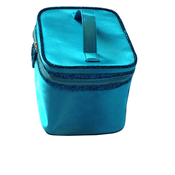 This Lunch bag is made of satin. Its main compartment has a zipper closure. The ample space could hold a lot of foods and it's easy to see the inside of the bag.