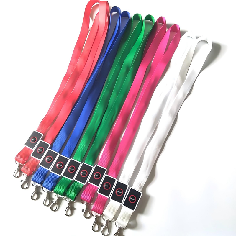Light-up lanyards stay solid or blink at two speeds. It has up to 8 hours of battery life.