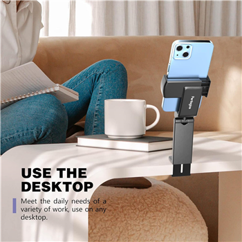 Dual joints with 360-degree rotation allow for the best viewing angle, whether you prefer vertical or horizontal orientation. Compatible with a wide range of phone sizes, the strong clamp can attach to tables, luggage handles, gym equipment, and more, up to 1.5 inches wide. Keep your phone within reach and in sight, whether you're on a plane, at your desk, or working out at the gym. Other uses of this phone holder: video call for work; holding phone for group photo; taking time lapse photographic; filming videos; desktop headphone holder.