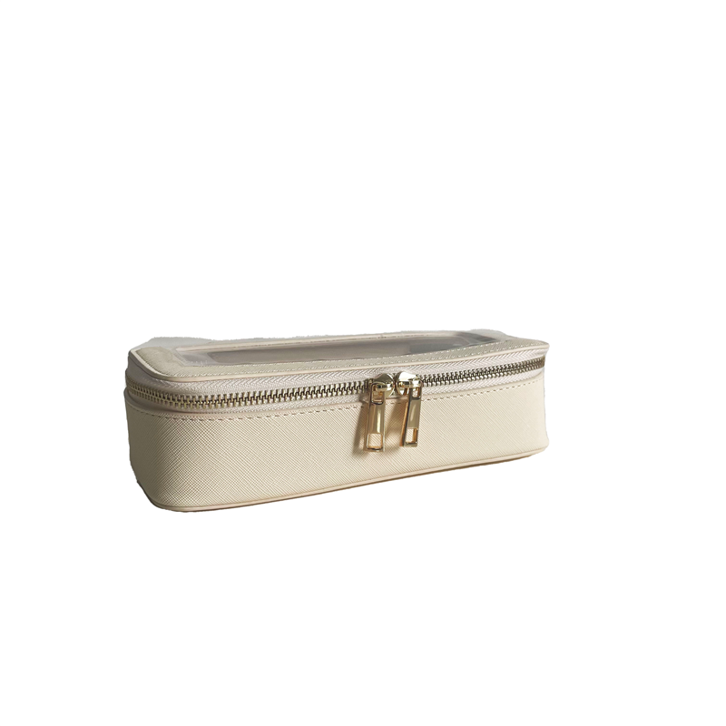 Made of high quality clear PVC material with PU elements, this 8.3'' x 2.4'' x 3.1'' bag has a full zippered closure. It's great for holding makeup, brushes, travel sized shampoo, conditioner, skin products and more.