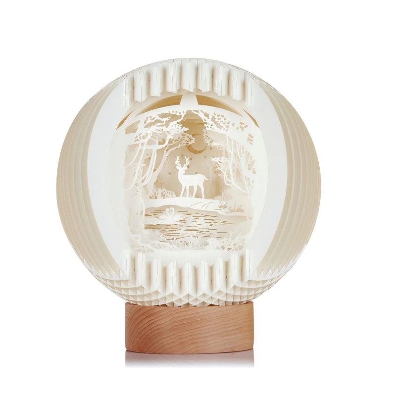 The Sphere Popup is created by combining multiple layers of paper. Everything is assembled into a unified whole without the use of glue. It can be easily folded into a flat form and can also be easily unfolded with a 3D shape.