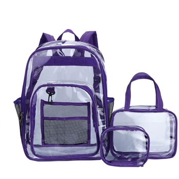Large:12.2"x16.9"x5.9", Middle:9.8"x7.1"x3.9", Small:6.7"x5.1"x1.9". Clear backpack for transporting school books and everyday gear; made of water-resistant PVC plastic. Completely transparent all around, including back and bottom―great for seeing inside and quickly finding what you need.