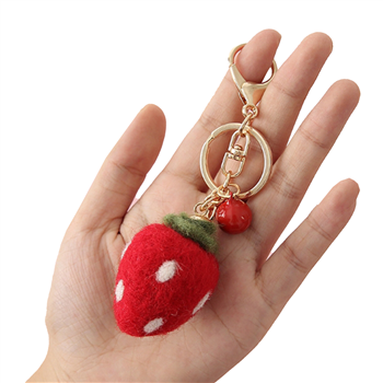 This strawberry key chain is made of handmade wool felt, perfect for decorating keys, bags, or serving as a delightful gift. It is ideal for those who love cute handmade accessories.